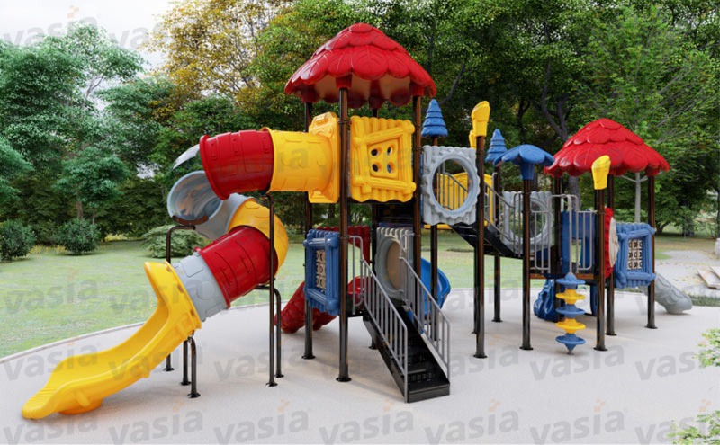 With multiple entry points, slides, and play panels, several kids can play at the same time. This promotes teamwork, sharing, and communication when they play the commercial small outdoor play equipment..